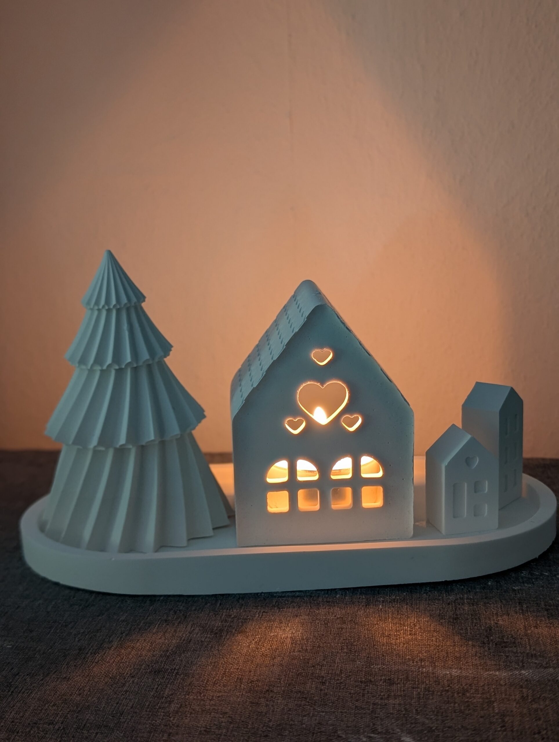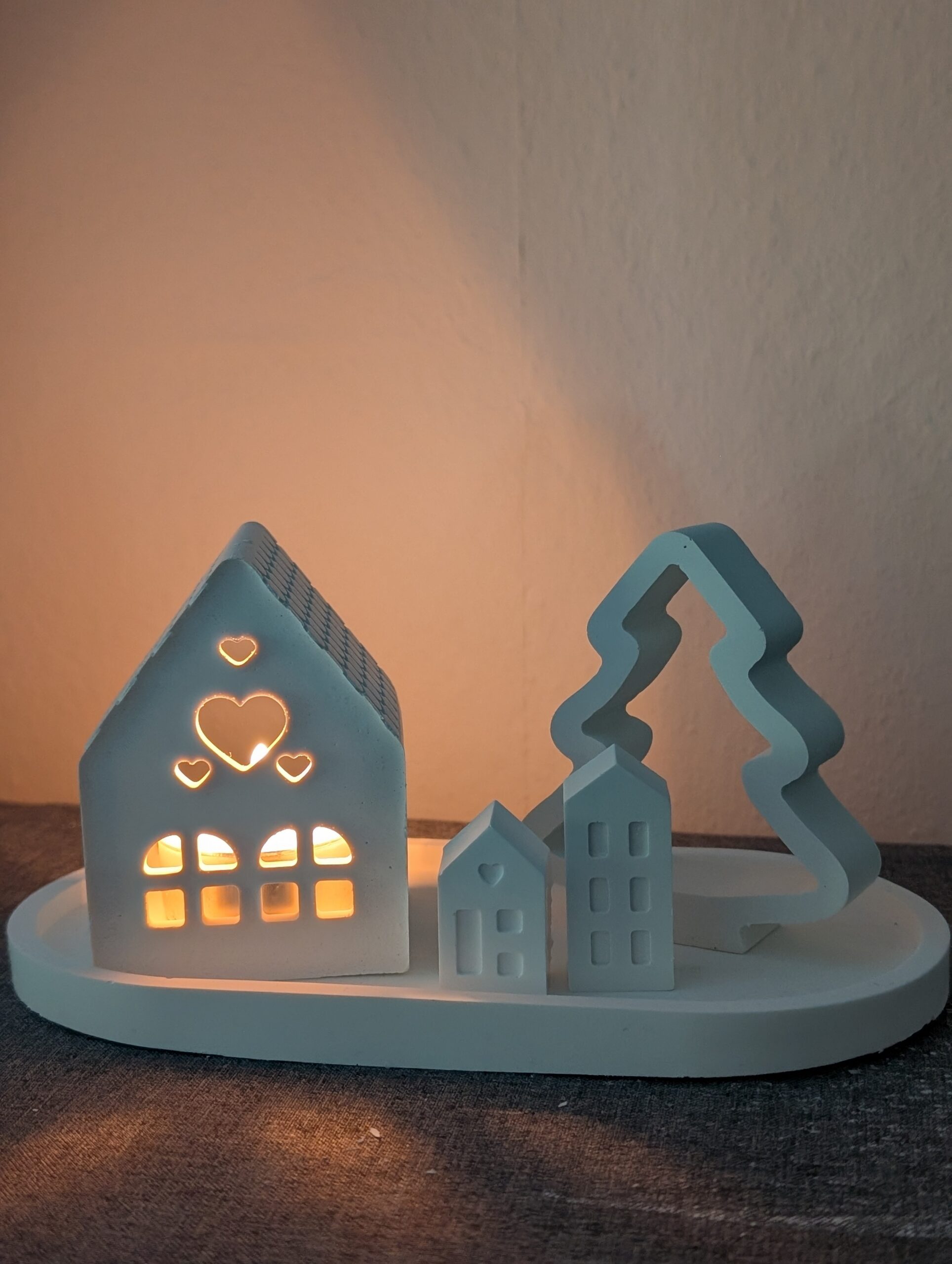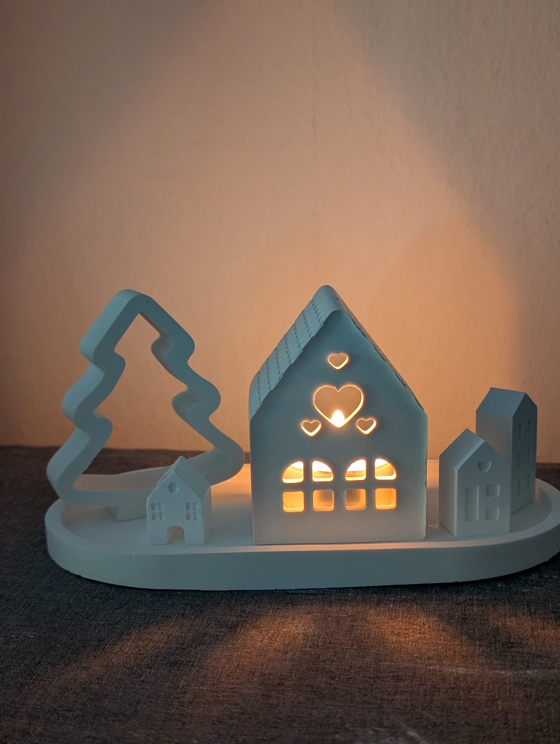 Keramikhaus „Herzenslicht“ – Dekorative Teelichthalter-Häuschen