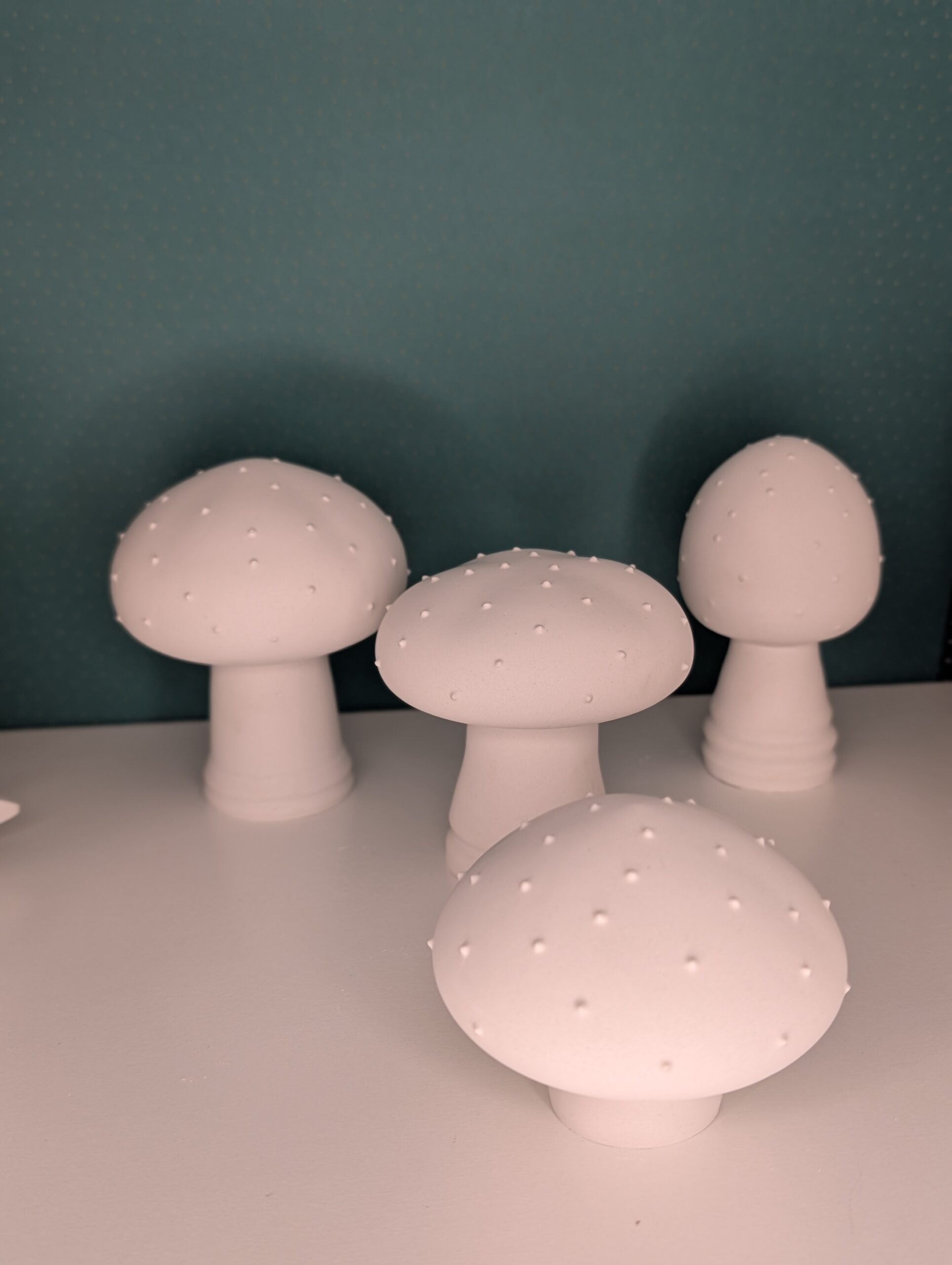 Bringen Sie einen Hauch von Märchenwald in Ihr Zuhause mit diesen stilvollen Deko-Pilzen aus weißer Keramik. Das Set besteht aus vier Pilzfiguren in verschiedenen Größen, die durch ihr minimalistisches Design und die feine Oberflächenstruktur mit kleinen Noppen bestechen.