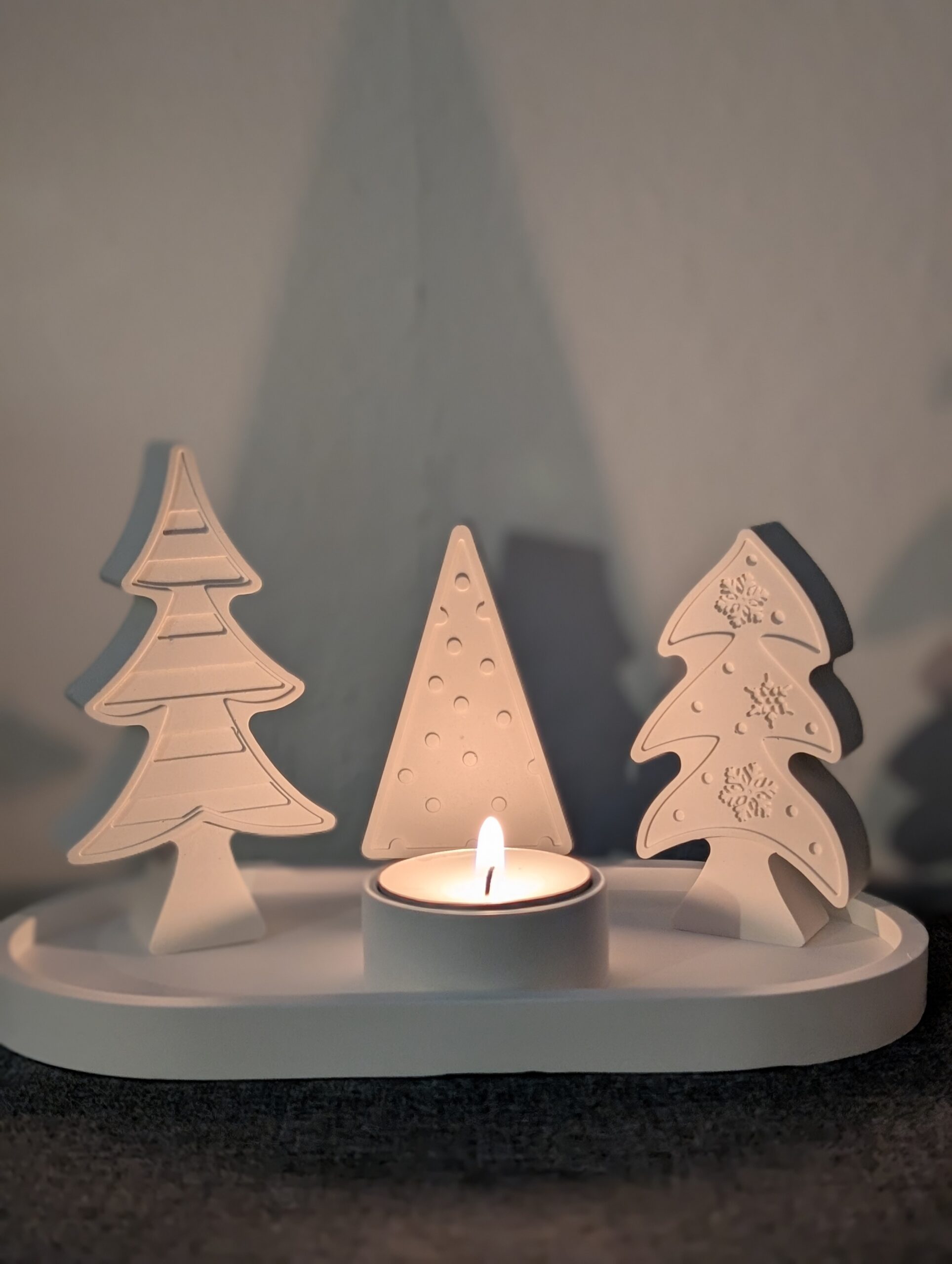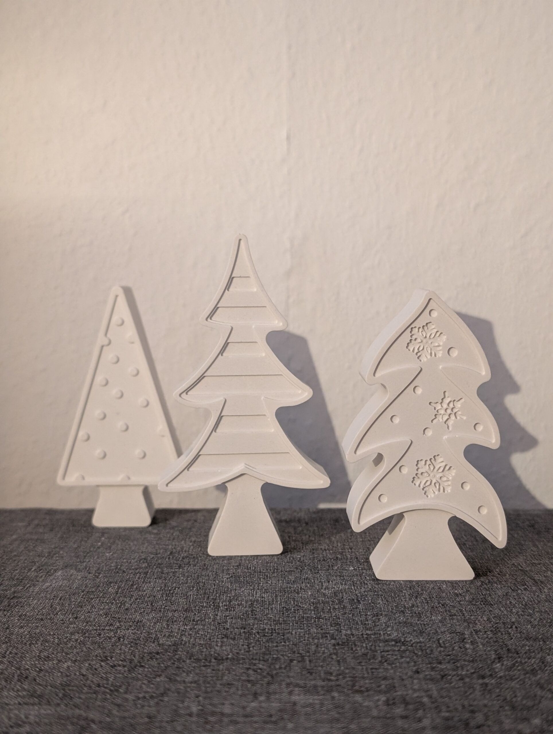 Dekorative Weihnachtsbaum-Figuren – 3er-Set aus weißer Keramik